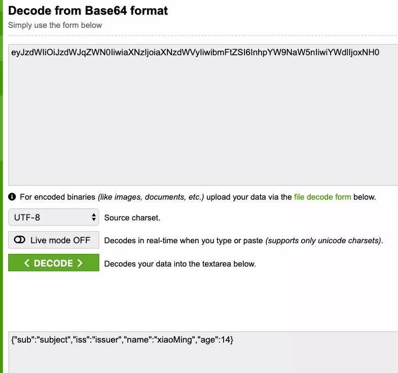 eyJhbGciOiJIUzI1NiJ9.eyJzdWIiOiJzdWJqZWN0IiwiaXNzIjoiaXNzdWVyIiwibmFtZSI6InhpYW9NaW5nIiwiYWdlIjoxNH0.3KOWQ-oYvBSzslW5vgB1D-JpCwS-HkWGyWdXCP5l3Ko