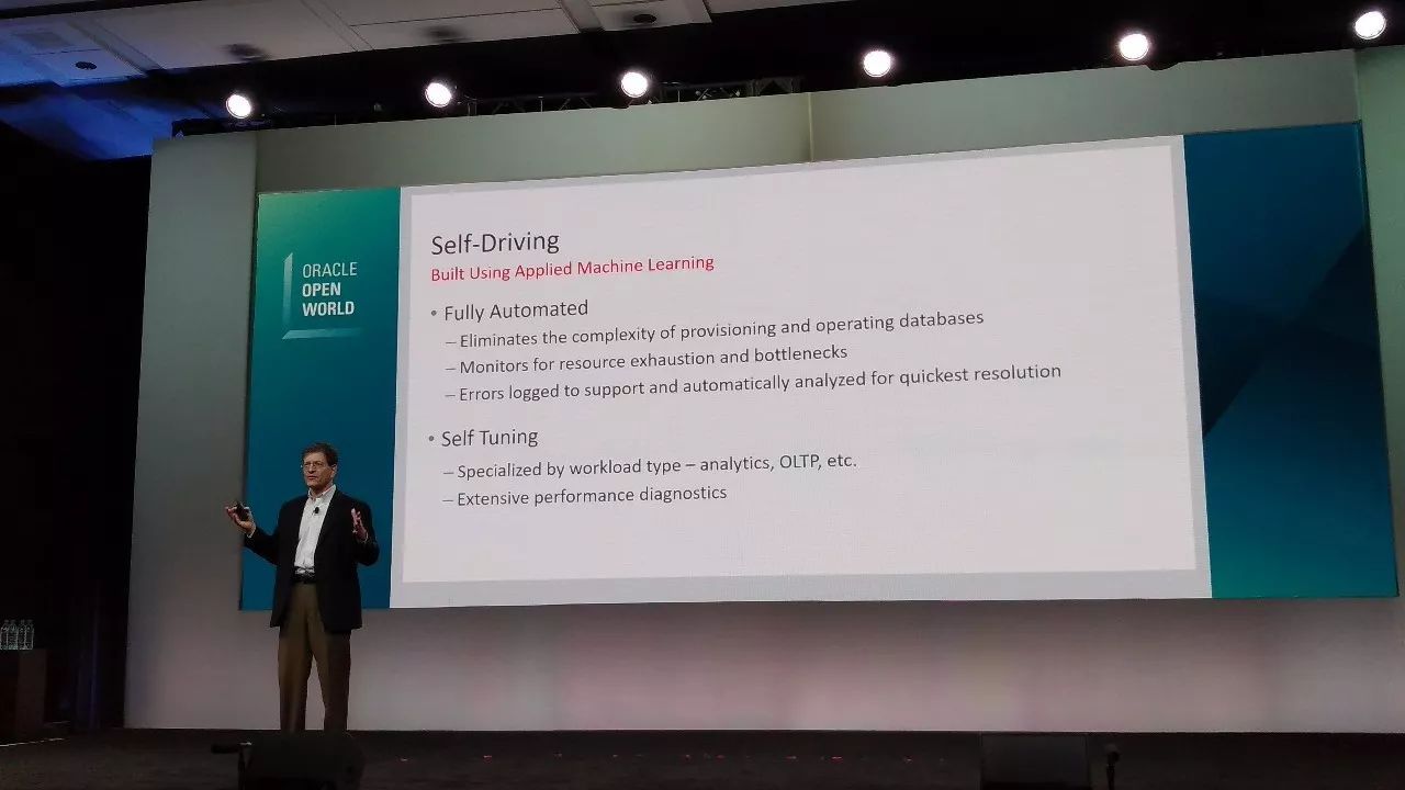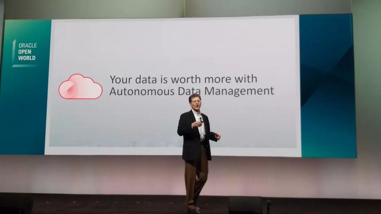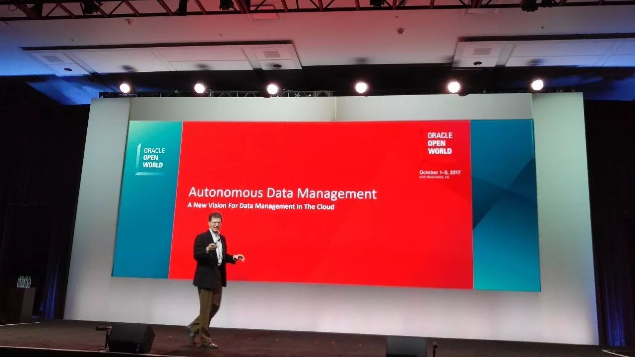 Andrew 的主题是:Autonomous Data Management - A new vision Data Management in the Cloud,其实从题目中可以看出自治的数据库、自我驾驶的数据库,是Oracle提出的愿景,这个愿景其实在Oracle的数据库中早已提出,而且再不断增强自动化的特性,而今天以『自治数据库』的概念提出,事实上是将以前的产品功能,上升到产品战略层面,确立了这一方向的核心地位。