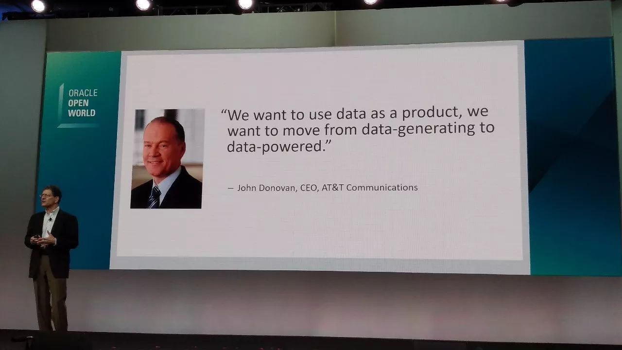 这也正是AT&T CEO John Donvan期望的:我们期望将数据作为产品,从传统的生产数据库演进到数据驱动的未来。