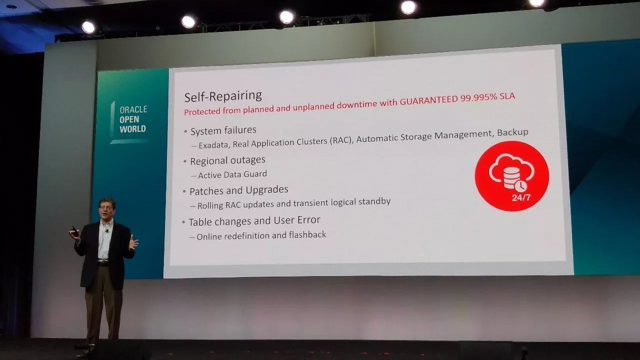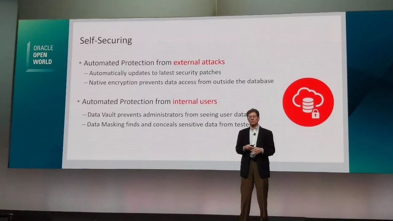 那么Vision有了,客户需求有了,如何实现这个愿景?Andrew进一步阐述,需要通过三个方向改进产品,从而实现:自动运行、自动安全、自动修复。自动运行是指,当定义了工作负载类型之后,Oracle让数据库在这种模型下自动运行;自动安全是指,从外部和内部威胁中,确保自动实现安全的防护;自我修复是指,自动保护所有可能的宕机事件,保持连续。