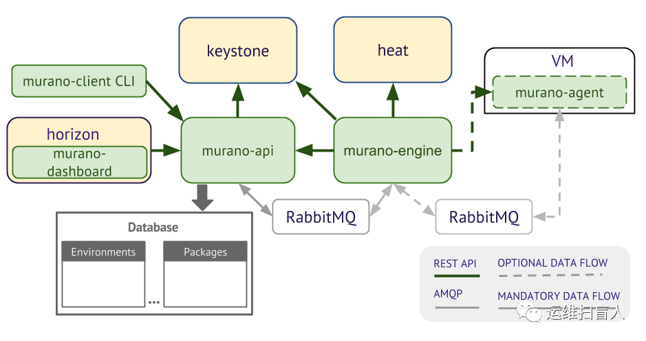 Murano服务包括以下组件,基本可以见名知意,注意murano运行在guest VM上执行template与scripts定义的部署动作,无需在hostVM部署。