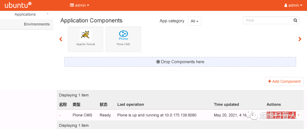 root@controller:~# openstack environment list+----------------------------------+--------+--------+---------------------+---------------------+| Id | Name | Status | Created | Updated |+----------------------------------+--------+--------+---------------------+---------------------+| c6de90087b2741f4a43283505223ecbc | My-App | ready | 2021-05-14T01:27:35 | 2021-05-14T01:29:49 |+----------------------------------+--------+--------+---------------------+---------------------+root@controller:~# openstack environment show c6de90087b2741f4a43283505223ecbc --only-apps+----------+------------------------------------------------------------------------+| Field | Value |+----------+------------------------------------------------------------------------+| services | [ || | { || | "?": { || | "type": "com.mydomain.HelloWorld/0.0.0@com.mydomain.HelloWorld", || | "id": "42", || | "name": "Demo", || | "metadata": null, || | "_actions": {}, || | "status": "ready" || | } || | } || | ] |+----------+------------------------------------------------------------------------+