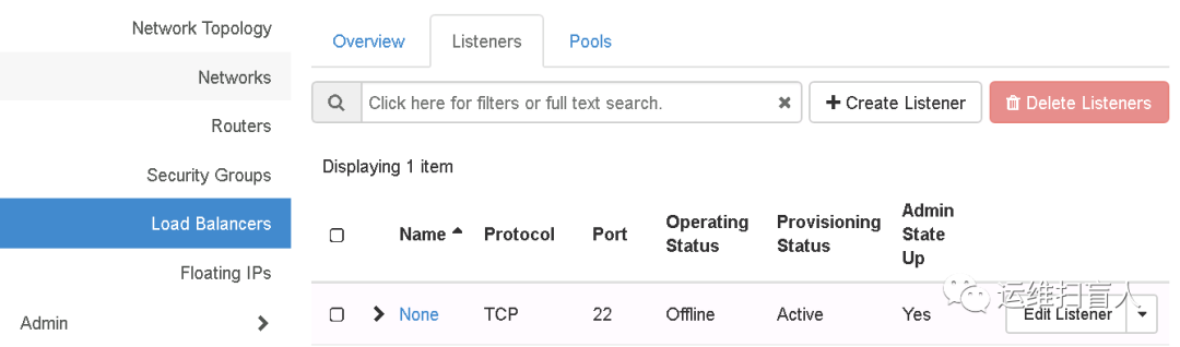 Listener:下属于 loadbalancer 的监听器,用户可配置监听外部对 VIP 的访问类型(e.g. 协议、端口)。