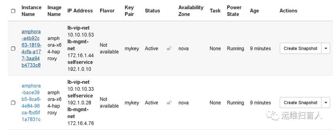只有当octavia.conf配置文件loadbalancer_topology = ACTIVE_STANDBY(默认为SINGLE),创建loadbalancer时才会创建两个amphora instance,在并且在vip-net创建两个vrrp-port,作为keepalived VIP漂移的载体,;