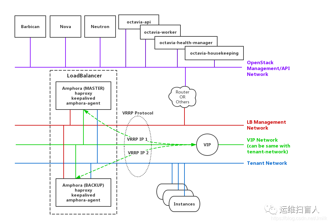 lb-mgmt-net:是一个与 OpenStack Management/API Network 打通的网络,东侧连接 Amphora Instance、西侧连接 Octavia 服务进程。