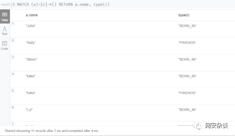 # step 1:导入 Neo4j 驱动包from neo4j import GraphDatabase# step 2:连接 Neo4j 图数据库driver = GraphDatabase.driver("bolt://localhost:7687", auth=("neo4j", "password")) # 添加 关系 函数def add_friend(tx, name, friend_name): tx.run("MERGE (a:Person {name: $name}) " "MERGE (a)-[:KNOWS]->(friend:Person {name: $friend_name})", name=name, friend_name=friend_name)# 定义 关系函数def print_friends(tx, name):for record in tx.run("MATCH (a:Person)-[:KNOWS]->(friend) WHERE a.name = $name ""RETURN friend.name ORDER BY friend.name", name=name):print(record["friend.name"])# step 3:运行with driver.session() as session:session.write_transaction(add_friend, "Arthur", "Guinevere")session.write_transaction(add_friend, "Arthur", "Lancelot")session.write_transaction(add_friend, "Arthur", "Merlin")session.read_transaction(print_friends, "Arthur")