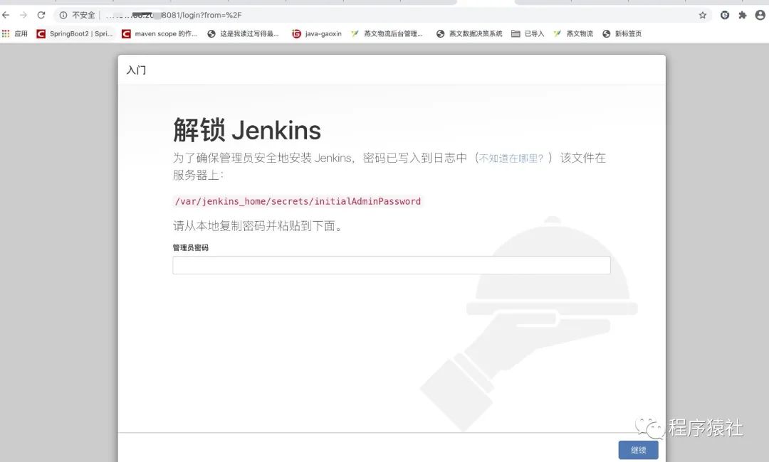 运行成功之后,访问jenkins,地址 http://113.51.156.205:8081/,第一次访问需要密码