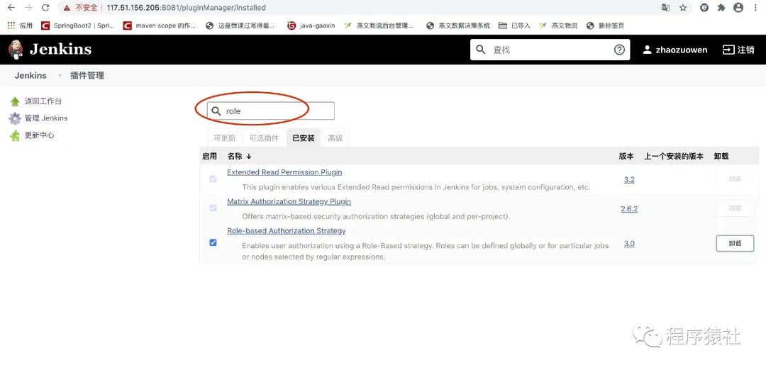 例如:根据角色管理权限的插件:Role-based Authorization Strategy