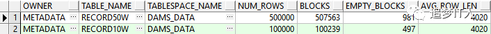 SELECT A.OWNER,A.TABLE_NAME,A.TABLESPACE_NAME,A.NUM_ROWS,A.BLOCKS,A.EMPTY_BLOCKS,A.AVG_ROW_LEN