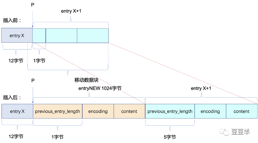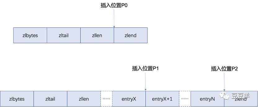 当插入位置为P1时,此时需要获取entry X元素的长度,而entry X+1元素的previous_entry_length字段存储的就是entry X元素的长度,比较容易获取;