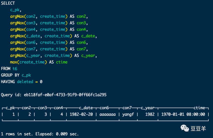可以看到以上场景中,我先后往t6中插入了两条数据,c_pk值都是1,但是用select进行查询,会把每次插入的数据都捞取出来,提取出两个数据集。这不是我们想要的。为了解决这个问题,通常有三种解决方案。一种是每次在写入数据后,立刻通过 optimize table partition part final,立即优化表分区,强制触发分区的合并动作。