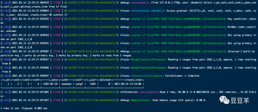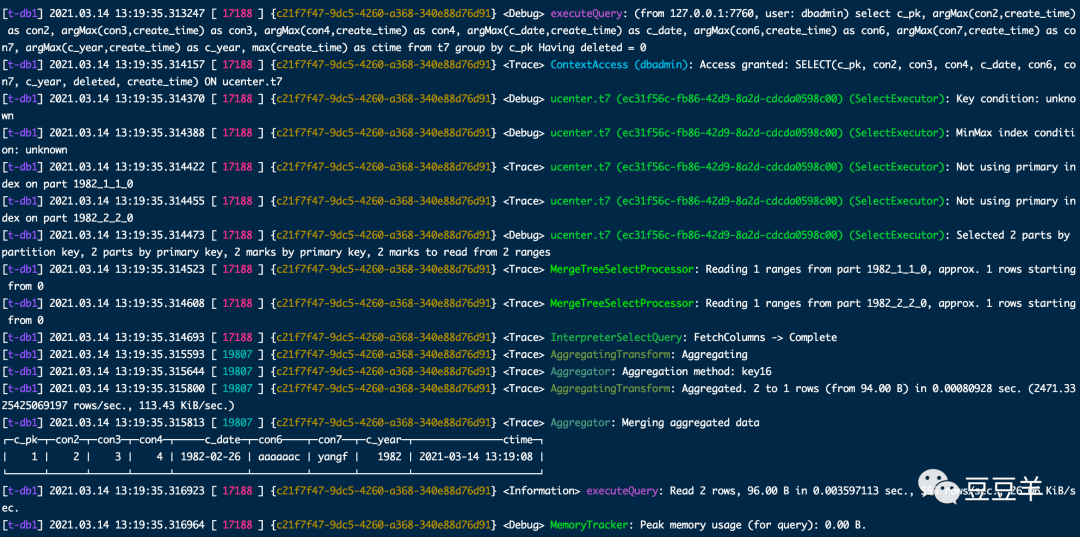 [root@t-db1 clickhouse]# clickhouse-client -h xxx.x.x.x -u xxx --password xxx --send_logs_level=trace