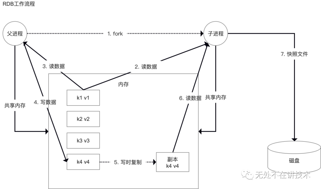 RDB:二进制文件,压缩保存,内存快照,原子替换