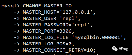 MASTER_HOST='127.0.0.1', 主库的ip地址