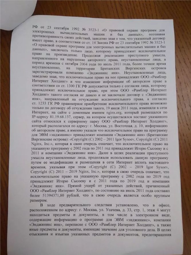 此案现已根据俄罗斯联邦《刑法》第 146 条第 3 款(侵犯版权和相关权)提起。