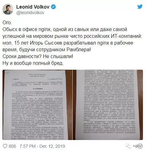 有 NGINX 员工在 Twitter 上晒出了搜查令的副本,并表示有人被带走调查。后续应警方要求,该员工删除了相关的推文。