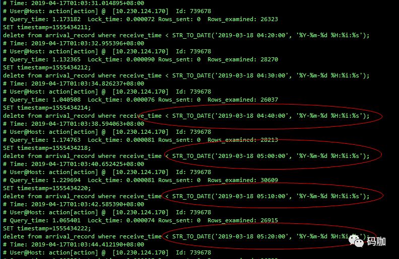 delete语句如下所示,每次记录的慢查询传入的参数值不一样