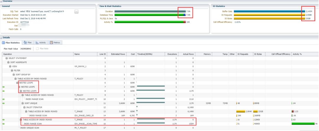 某保险业客户,新购一台半配oracle Exadata(原厂一体机,一体机中的战斗机,大部分客户买1/4配,半配已经是很高的配置了),做完系统迁移后,满心期待原有系统跑不出结果的业务能够正常使用,然而事与愿违,SQL执行了8小时,还在欢快的跑着,距离出结果的时间还是遥遥无期,有图有真相: