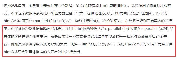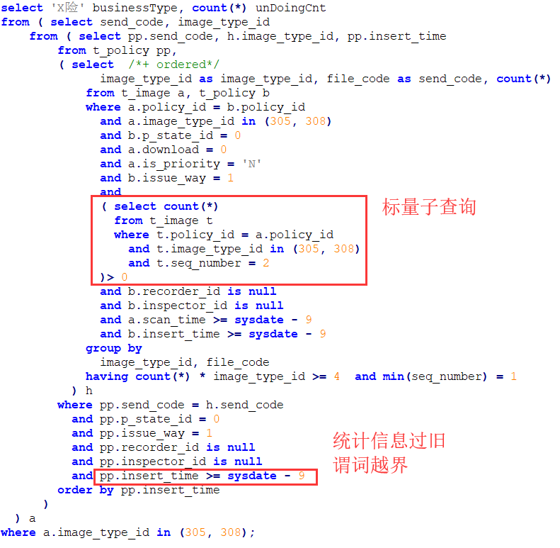 客户比较生气,花了几百万买的战斗机,开起来怎么还像拖拉机?分析后发现问题非常清晰:开发人员写的SQL是低效的,再好的硬件无法发挥作用;DBA关闭了统计信息收集,再多的资源也会被耗光。SQL写法: