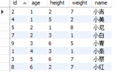 INSERT INTO user(id,age,height,weight,name)VALUES(2,1,2,7,'小吉');