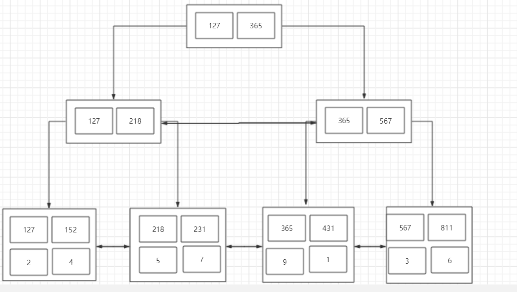 那么根据这个排序我们也可以画出一个B+树,这里就不像上文画的那么详细了,简化一下: