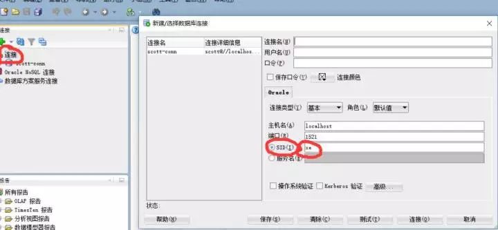 用户名和口令:根据你需要连接的用户来填写,如scott/tiger