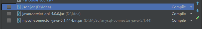其中最后一个jar包为连接mysql的驱动包,这个包可以在mysql官网上下载,有关键字Connector,自己去下载即可,等一下还要用到(其他的两个包你可以去网上下载)