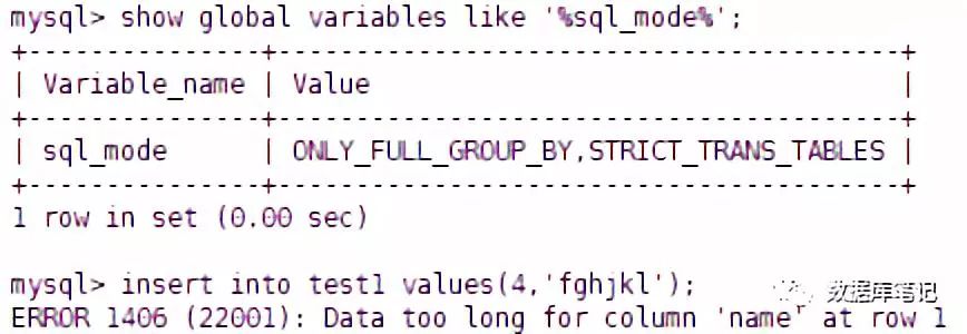 在5.5中,未设置STRICT_TRANS_TABLES限制的情况下,插入超长数值会默认截断,依然可以插入成功,不会报异常。而在5.7中则会直接报错: