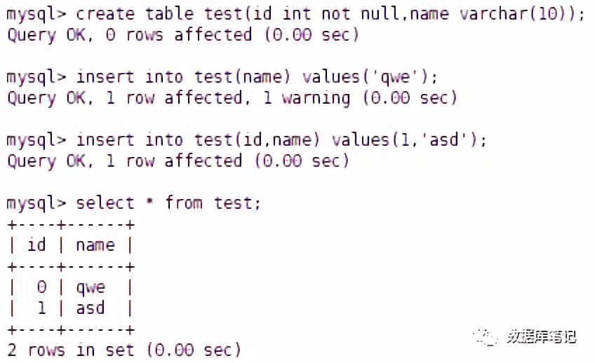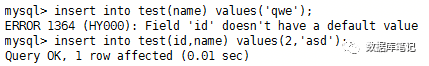 在5.5中,未设置STRICT_TRANS_TABLES限制的情况下,插入NOT NULL字段缺省值,可以成功。int类型字段默认插入0,varchar类型字段默认插入null。而在5.7中则会直接报错: