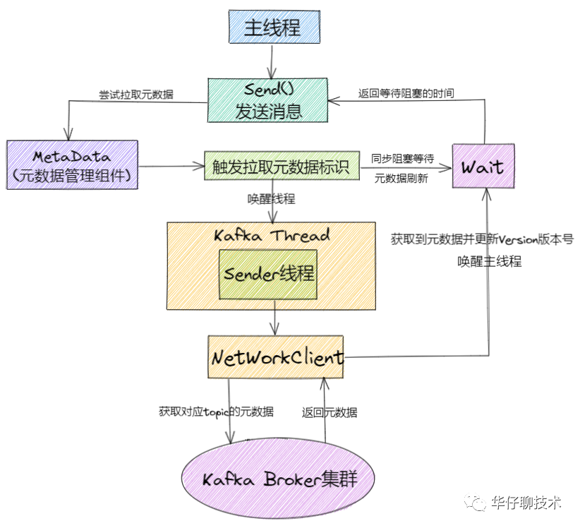 //5)、生产者需要从服务端那儿拉取kafka的元数据。需要发送网络请求,重试等,