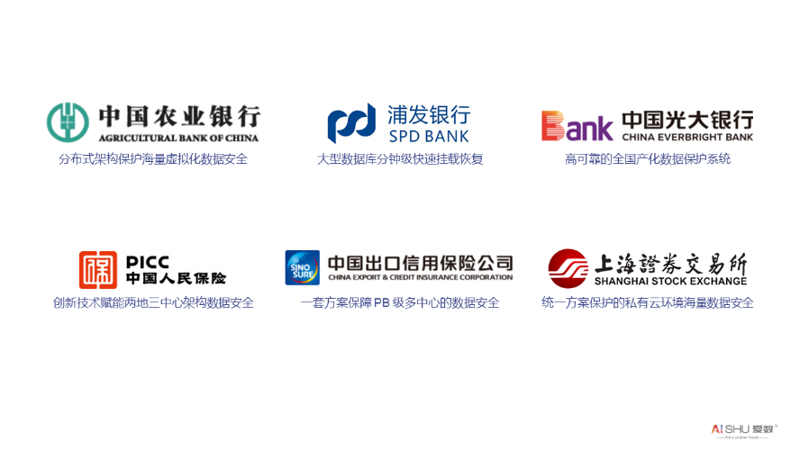 多年来,爱数灾备体系解决方案已经服务了400多家金融机构,包括国有银行和股份制银行总行和头部保险公司等大型金融机构。迎接数据安全等新的挑战,金融行业更加需要有行业针对性的体系方案、稳定可靠的产品,以及专业化的交付和运营,这正是爱数灾备体系解决方案的定位。