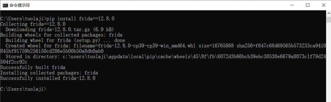 使用pip安装frida,建议指定frida版本进行安装,本文使用的frida版本为12.8.0