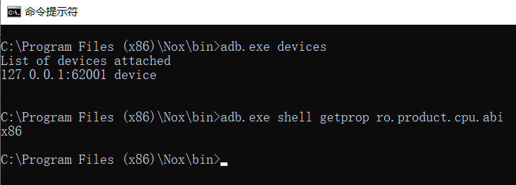 使用命令nox_adb.execonnect 127.0.0.1:62001,使电脑和模拟器建立连接