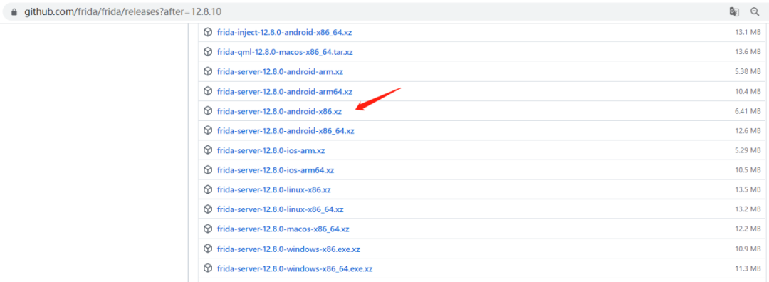到https://github.com/frida/frida中下载相对应的frida服务端,版本、系统、位数均要正确。