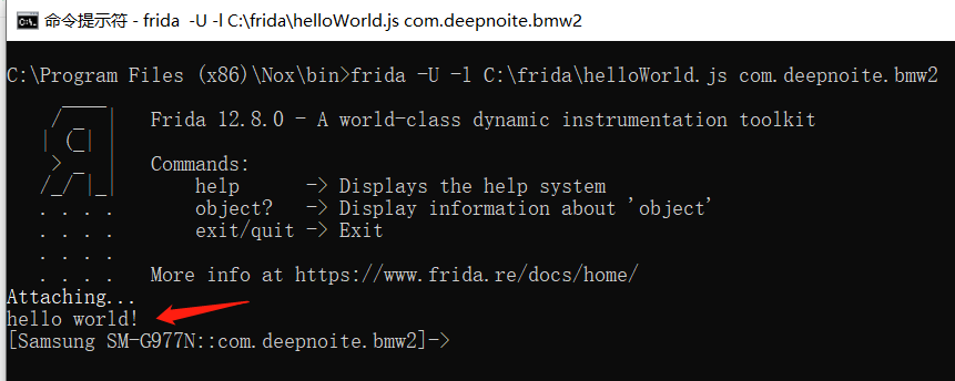 frida -U-l C:\frida\helloWorld.js com.deepnoite.bmw2