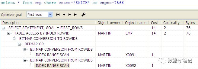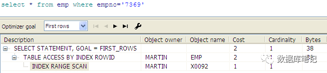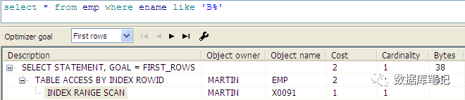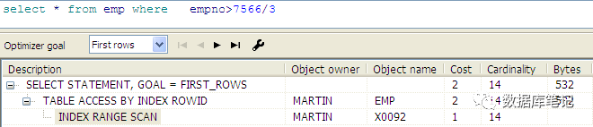 两者的区别在于, 前者DBMS将直接跳到第一个DEPT等于4的记录而后者将首先定位到DEPTNO=3的记录并且向前扫描到第一个DEPT大于3的记录.