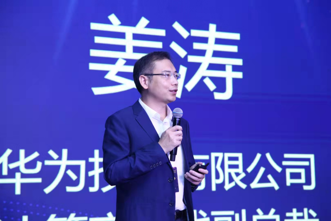 华为计算产品线副总裁姜涛代表华为公司领奖并发表主题演讲,他表示有了通用计算鲲鹏,AI计算昇腾,未来是通用计算加上异构计算的多样性算力,鲲鹏+昇腾,基于多样性算力融合创新,可以为计算产业创新创造更大价值。