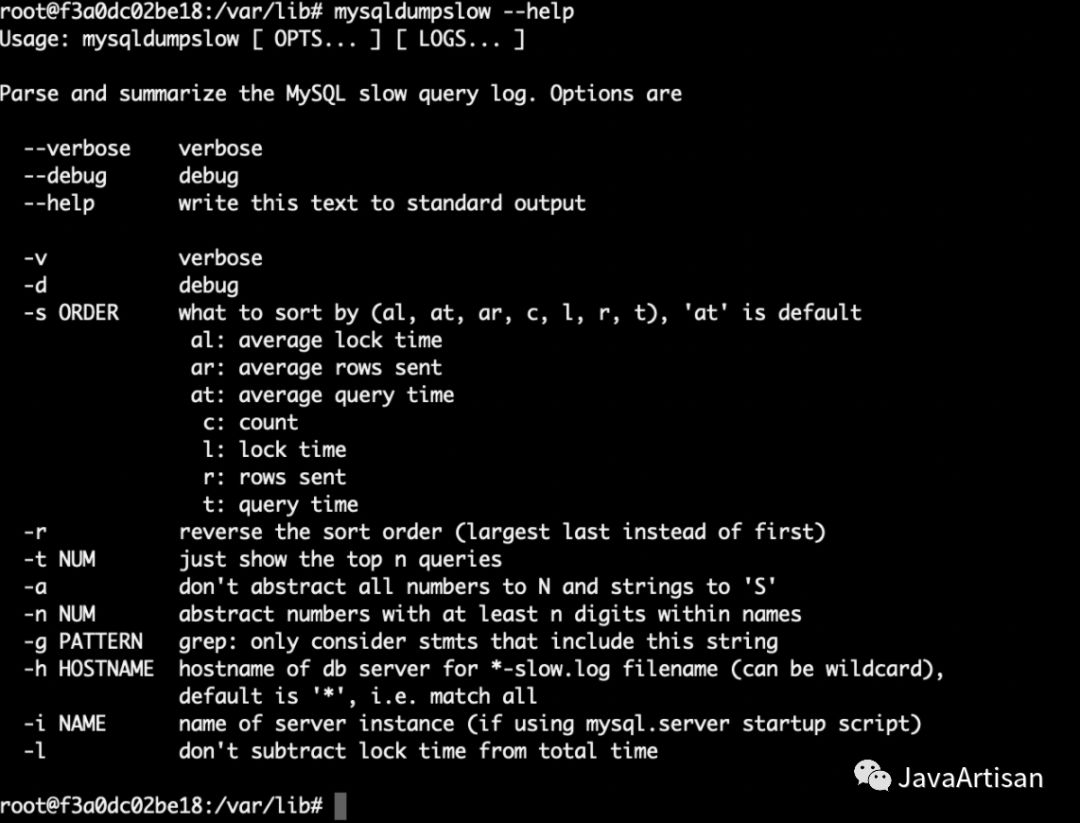 mysqldumpslow -s t -t 10 -g “left join” database/mysql/mysql06_slow.log另外建议在使用这些命令时结合 | 和more 使用 ,否则有可能出现刷屏的情况。