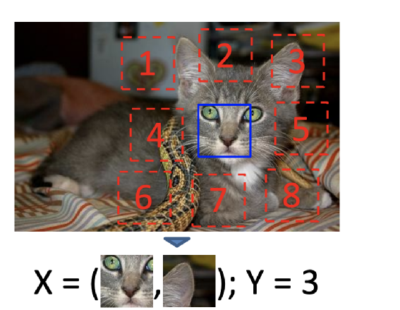 选取9个小图的中心小图和除外一个随机小图,这两个图片经过Encoder后特征拼接进入全连接分类图,分类类别为8。