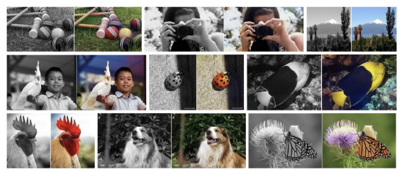 灰度图经过Encoder得到 特征; 特征经过Decoder重建得到上色图片; 上色图片和原图计算Loss,常见的上色任务是计算上色后图片与原图的L1或者L2 Loss,在附图论文中Loss做了一些特殊处理:颜色模式不是RGB而是LAB(参考4),此外将AB 颜色通道量化为313个区间,最终目标是求每个像素点在313区间的分类概率,根据将分类概率Top N 平滑后选择上色。