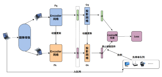 负样本通过定长队列维护保存,每个Batch淘汰老数据,加入新数据