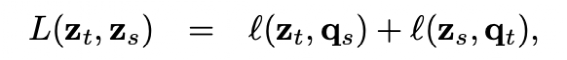 通过交换预测来计算Loss,也就是希望Zt和Vs 相似,Zs 和 Vt相似