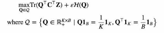 引入了 Q=[q1,…,qB]∈ℝK×B,可以认为Q就是这B个(Batch Size)图片对应的最理想的聚类中心,论文作者尝试Q分别为离散值和连续值的效果,目前连续值的效果更好。
