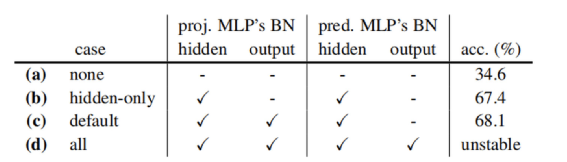Predictor 的MLP的隐层输出需要进行Batchnorm(但输出层不能加),否则模型性能退化严重