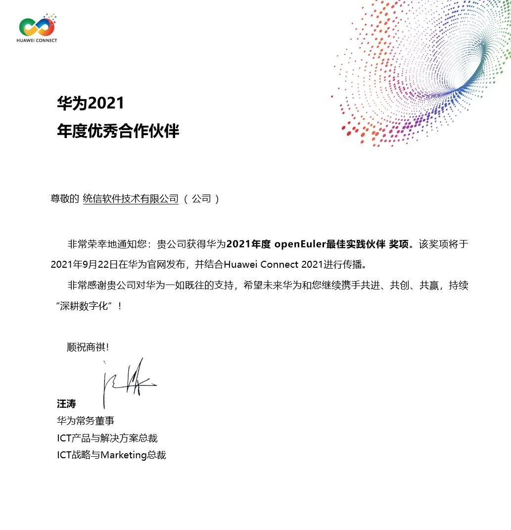 此次获奖,是对统信软件与华为生态合作的肯定,未来统信与华为、openEuler也将继续深入合作,打造自主开源社区生态,推出更多面向各行业、多场景的产品与解决方案,共同助力数字产业创新发展。