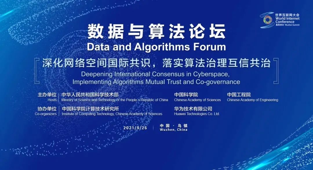 9月26日,世界互联网大会乌镇峰会数据与算法论坛顺利举办,来自信息技术领域的院士专家和业界代表齐聚乌镇,以“深化网络空间国际共识,落实算法治理互信共治”为主题,共同探讨算法面临的形势和挑战,为算法综合治理建言献策。本次论坛由国家互联网信息办公室网络管理技术局发起,科学技术部、中国科学院、中国工程院联合主办,中国科学院计算技术研究所、华为技术有限公司负责协办。