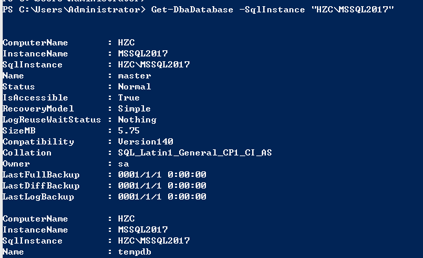 Get-DbaDatabase -SqlInstance "HZC\MSSQL2017"