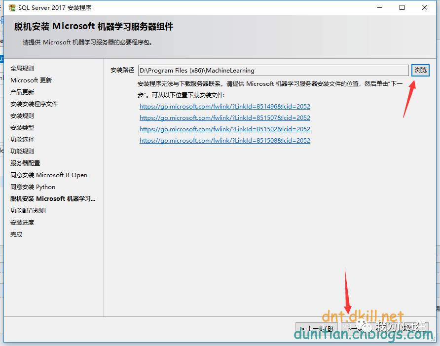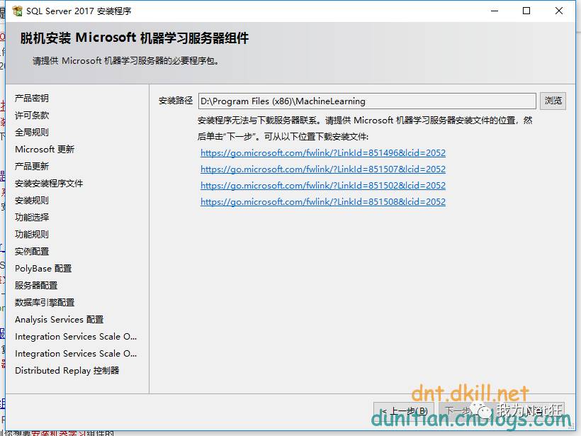 安装程序无法与下载服务器联系。请提供 Microsoft 机器学习服务器安装文件的位置,然后单击“下一步”。可从以下位置下载安装文件: