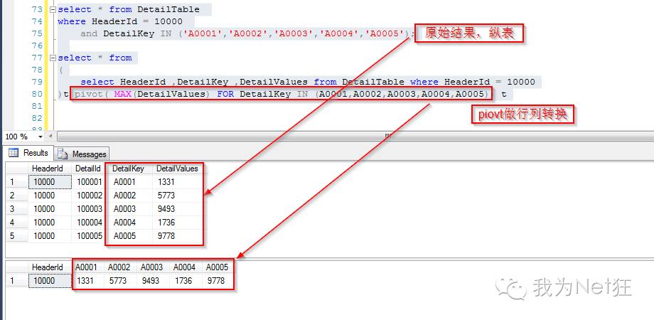 这里将子表的结果“一次性将纵表的结果转换成横标”,是典型的行列转换操作