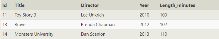 (7)找到2010(含)年之后的电影里片长小于两个小时的片子